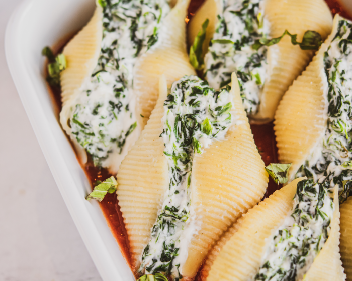 These classic Stuffed Shells feature Borgatti’s bronze die cut Jumbo Shells, crafted to hold generous amounts of creamy ricotta filling while capturing every layer of sauce. The textured surface of our bronze die cut pasta helps sauce cling beautifully, delivering rich flavor in every bite.